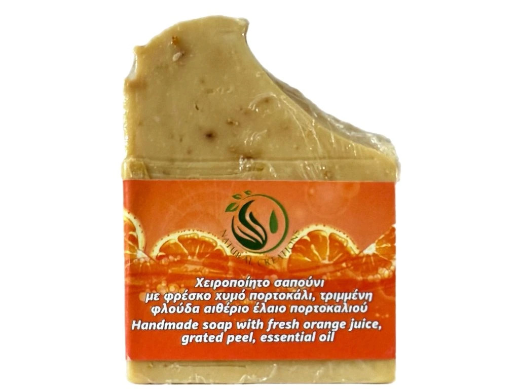 Ručně vyráběné mýdlo s pomerančem je vhodné pro všechny typy pleti, na tělo, obličej a vlasy. Hloubkově čistí, vyhlazuje jemné linky a vrásky na obličeji. Má antiseptické a detoxikační vlastnosti, podporuje tvorbu kolagenu, zlepšuje texturu a barvu pleti, bojuje proti nedokonalostem a pigmentovým skvrnám. Odstraňuje černé tečky a hloubkově čistí póry, dodává pleti lesk a pružnost. Díky strouhané pomerančové kůře, kterou obsahuje, probíhá při mytí lehká exfoliace. Ideální mýdlo na strie a celulitidu. Je 100% přírodní, bylo vyrobeno studenou metodou, což znamená, že olivový olej a přírodní pomerančová šťáva nebyly zahřívány, aby se nezničily jejich cenné vlastnosti. Barva mýdla je zcela přírodní, bez přidání umělých barviv, bez konzervantů a bez živočišných složek.